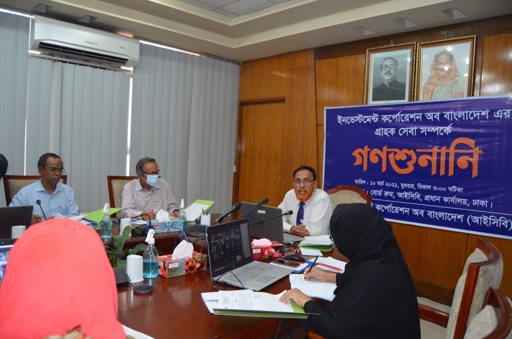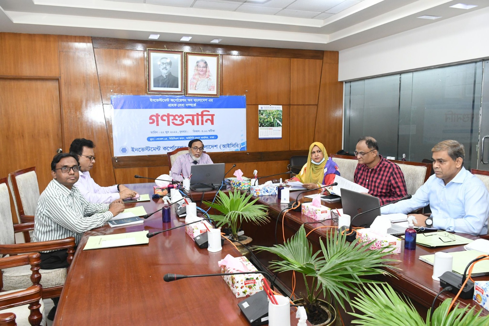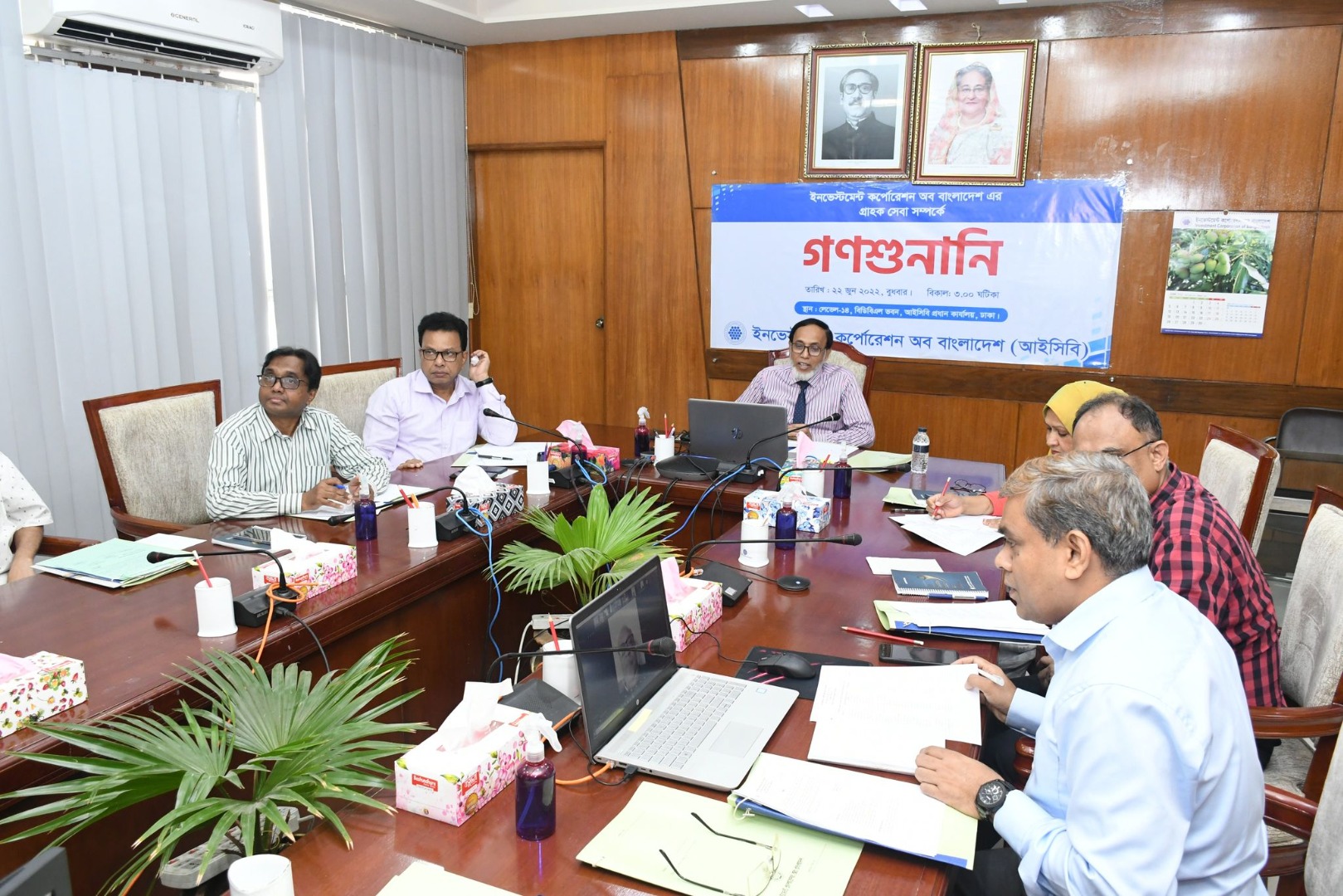 A public hearing regarding customer service of Investment Corporation of Bangladesh (ICB) was conducted through digital platform (zoom app) on 22.06.2022 at 03:00 pm. At the hearing, the honorable customers of ICB expressed their opinions and provided valuable suggestions related to the customer service of ICB. Senior officials including Managing Director of ICB provided necessary instructions to the related departments, branches and subsidiary companies regarding the opinions and suggestions of the customer to improve the quality of the customer service of ICB.