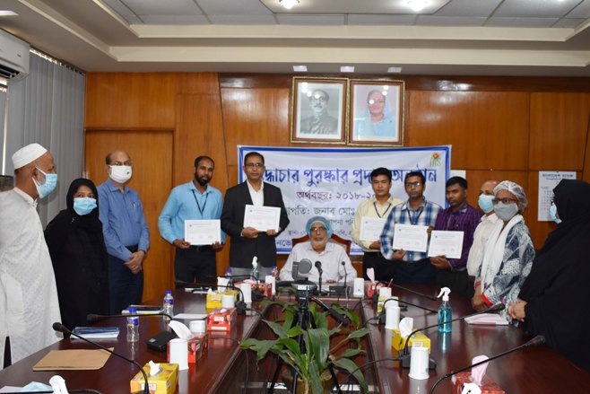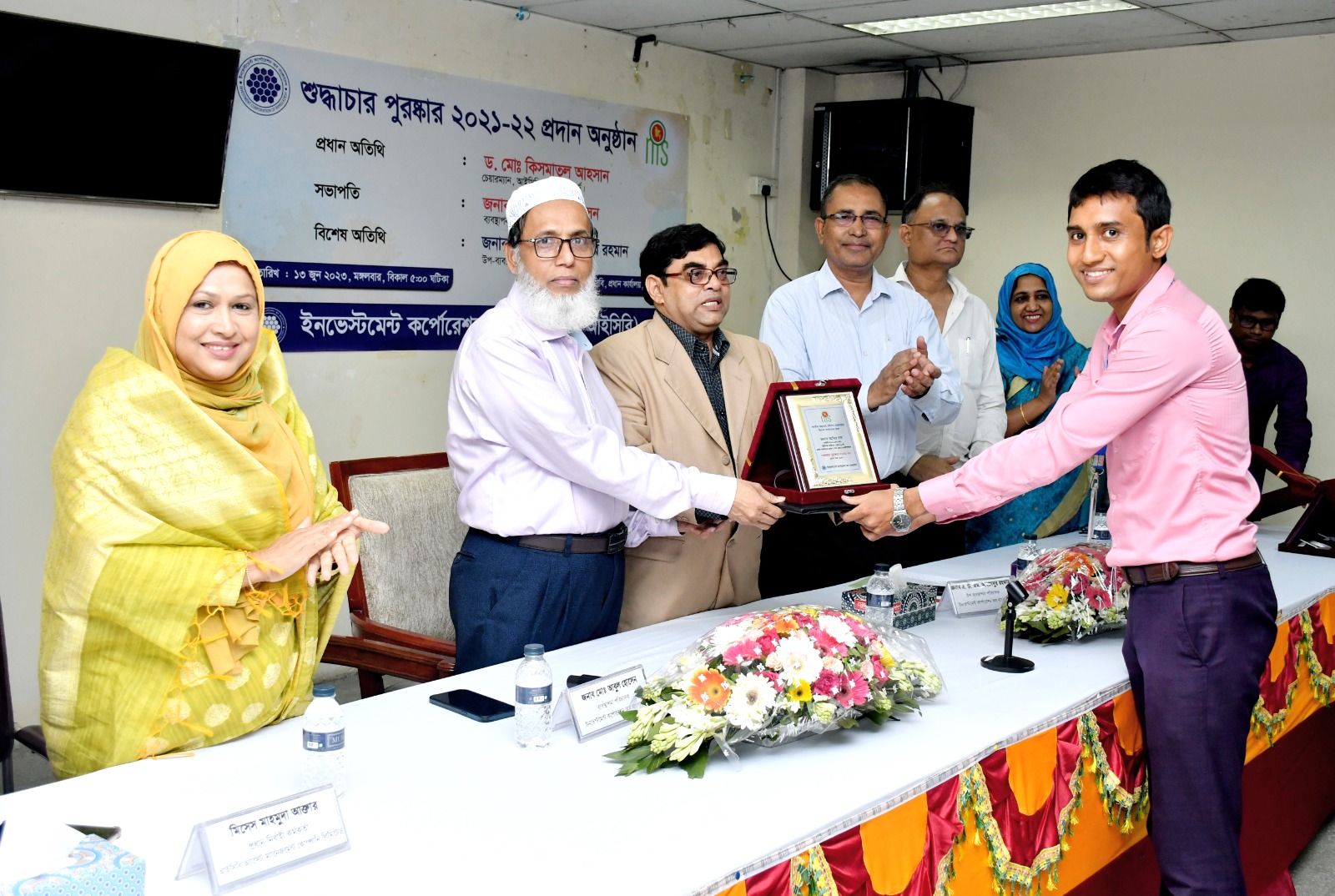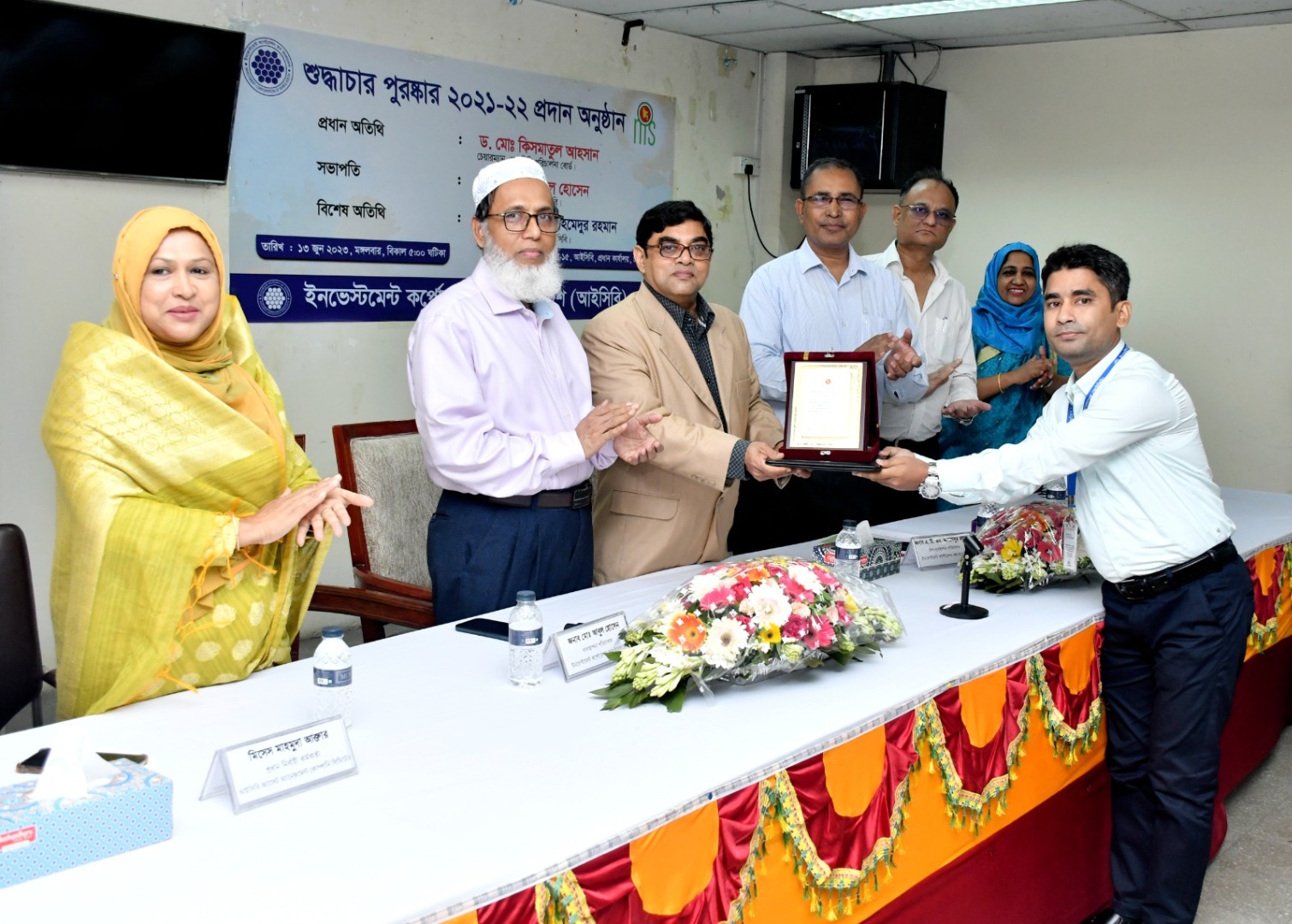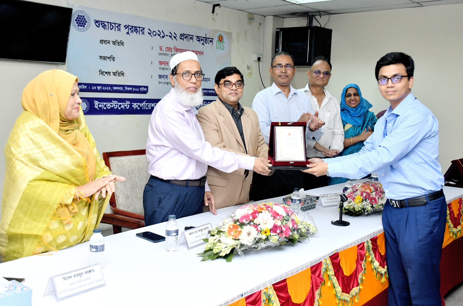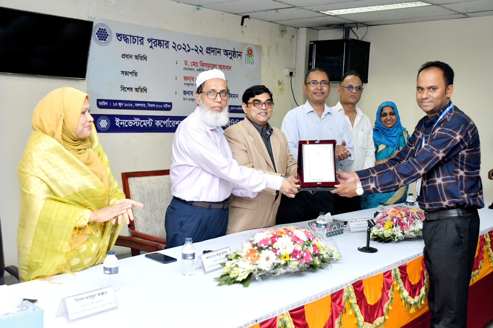 | “Integrity award” for the financial year 2018-19 has been handed over to five employees of Investment Corporation of Bangladesh (ICB). An award giving ceremony, presided over by Managing Director Mr. Md. Abul Hossain, was organized at the head office of ICB where senior executives and other officials of the corporation were present. |